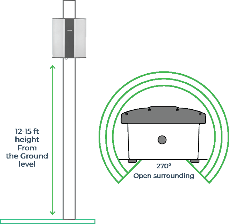 Light-weight and compact system that can be installed at 12-15 feet (4-5 m) height.